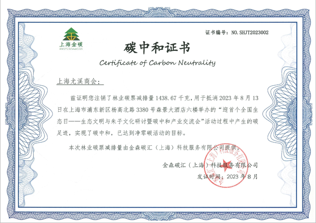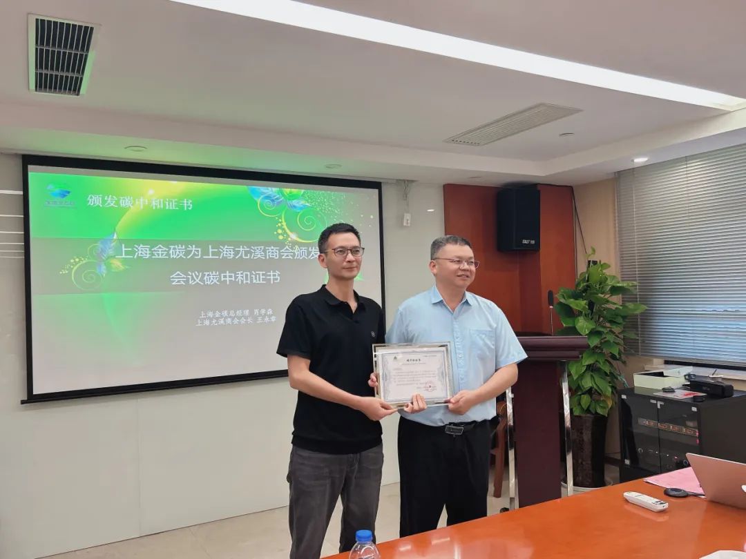 上海金碳为上海尤溪商会颁发会议碳中和证书
