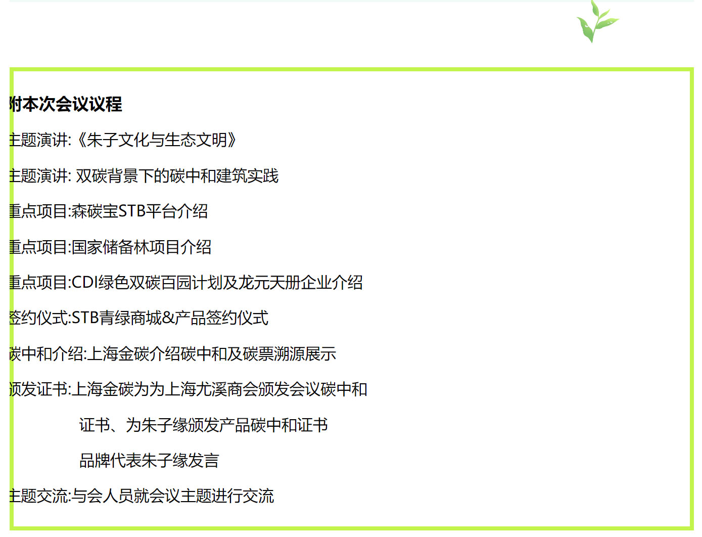 6月28日,十四届全国人大常委会第三次会议决定将8月15日设立为全国生态日。为迎815首个全国生态日,在三明市驻沪办和上海市三明商会的指导下,福建森碳宝数字科技有限公司主办的生态文明与朱子文化研讨暨碳中和产业交流会于8月13日在上海森景大酒店召开。